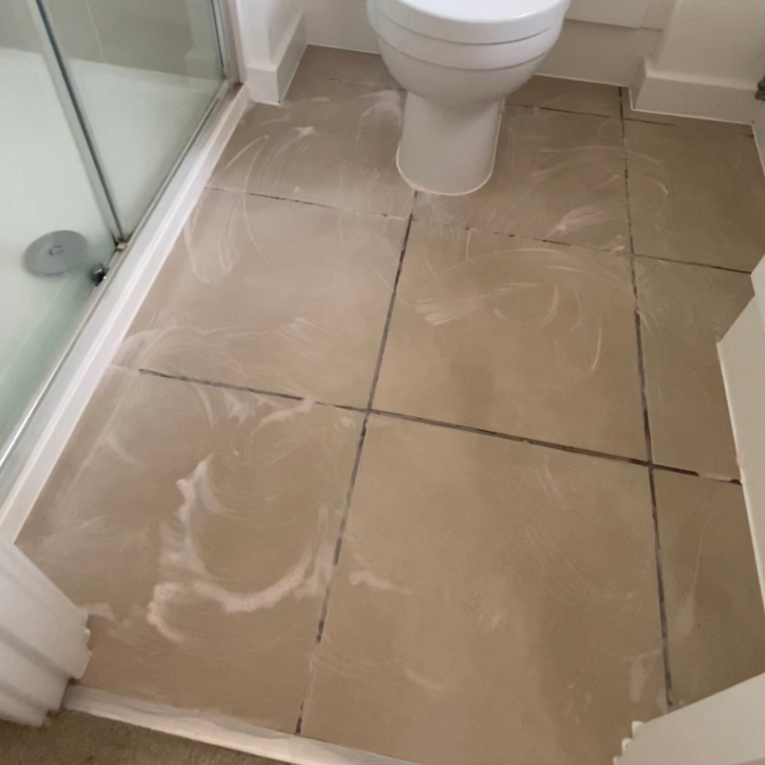 Now all of your tiles are removed & any left behind adhesive sheets have been peeled off all that is left in the removal process is to apply a layer of warm soapy water to your flooring & leave it to sit for 10 minutes. This will break down any adhesive left on the floor that may not be visable.