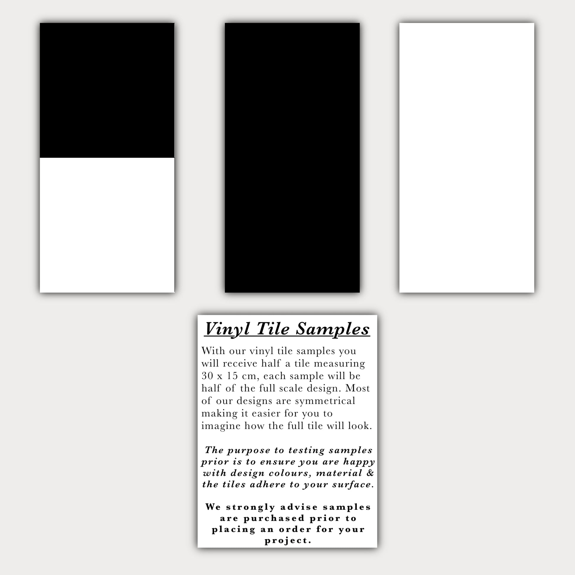 - Each tile sample is half a tile (design remains full scale) Please keep in mind samples may be from different batches so we can not guarantee will match together if ordering 1 or more of the same design to make a full tile. We advise using our 'top up tile section' if you need the odd extra tile.