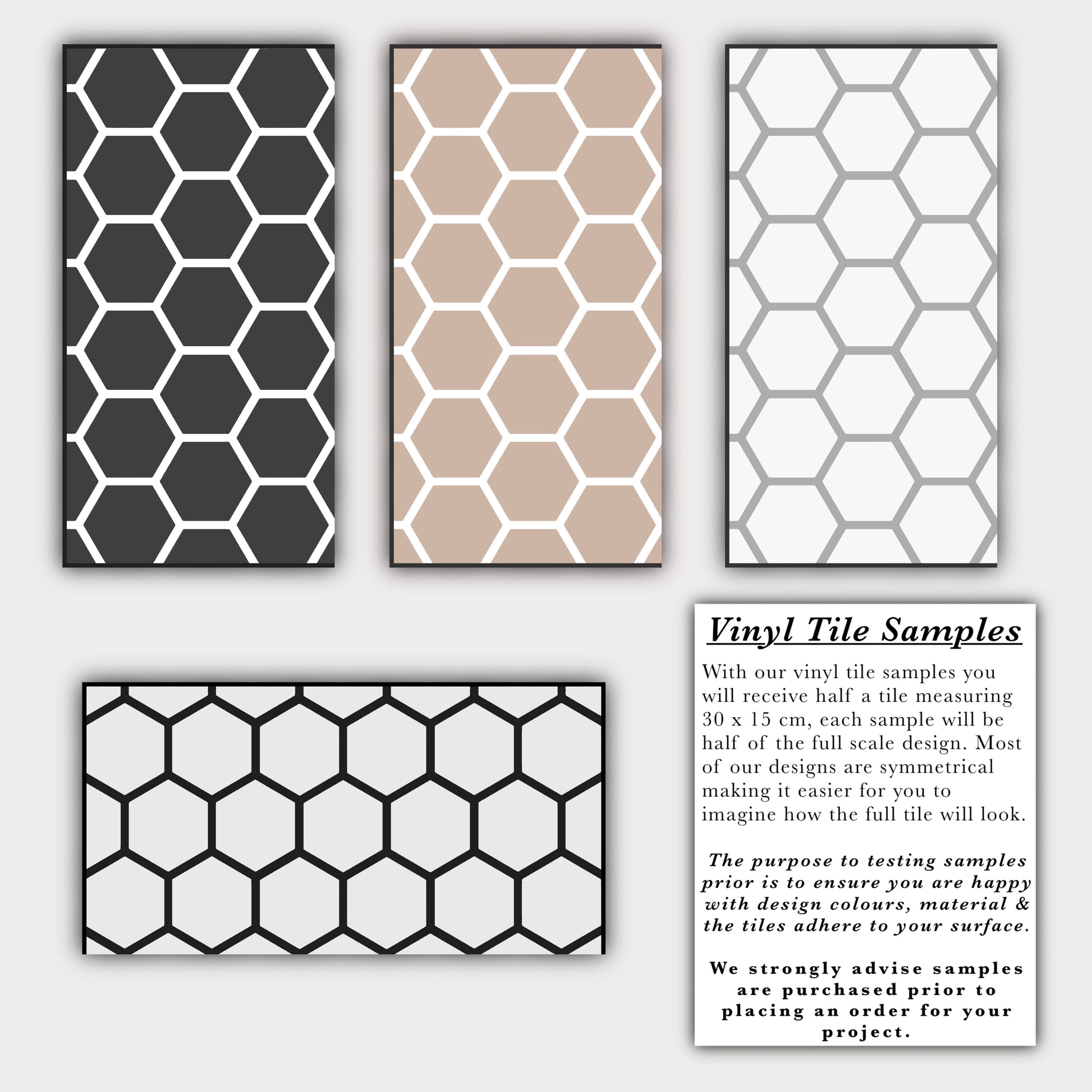 Please ensure you have ordered samples prior to placing your premium tile order as colours can vary to how they look on different screens & you can ensure the tiles work in your chosen area.