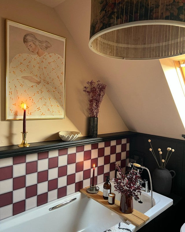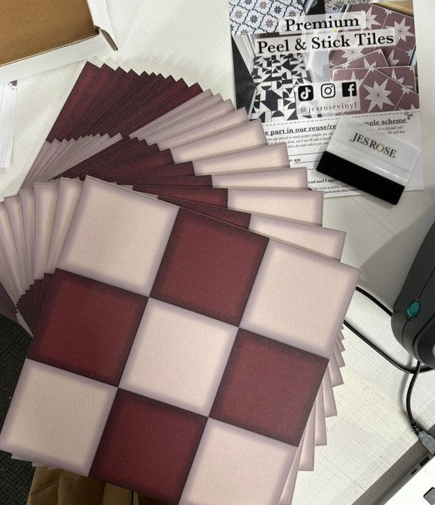 Retro Check Burgundy Premium Peel & Stick Tiles